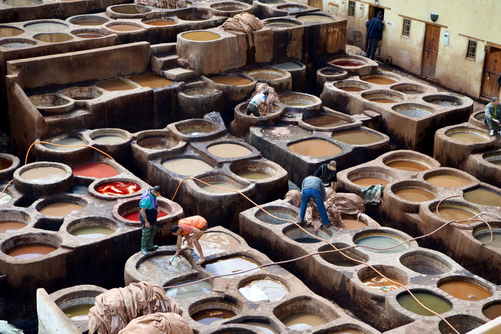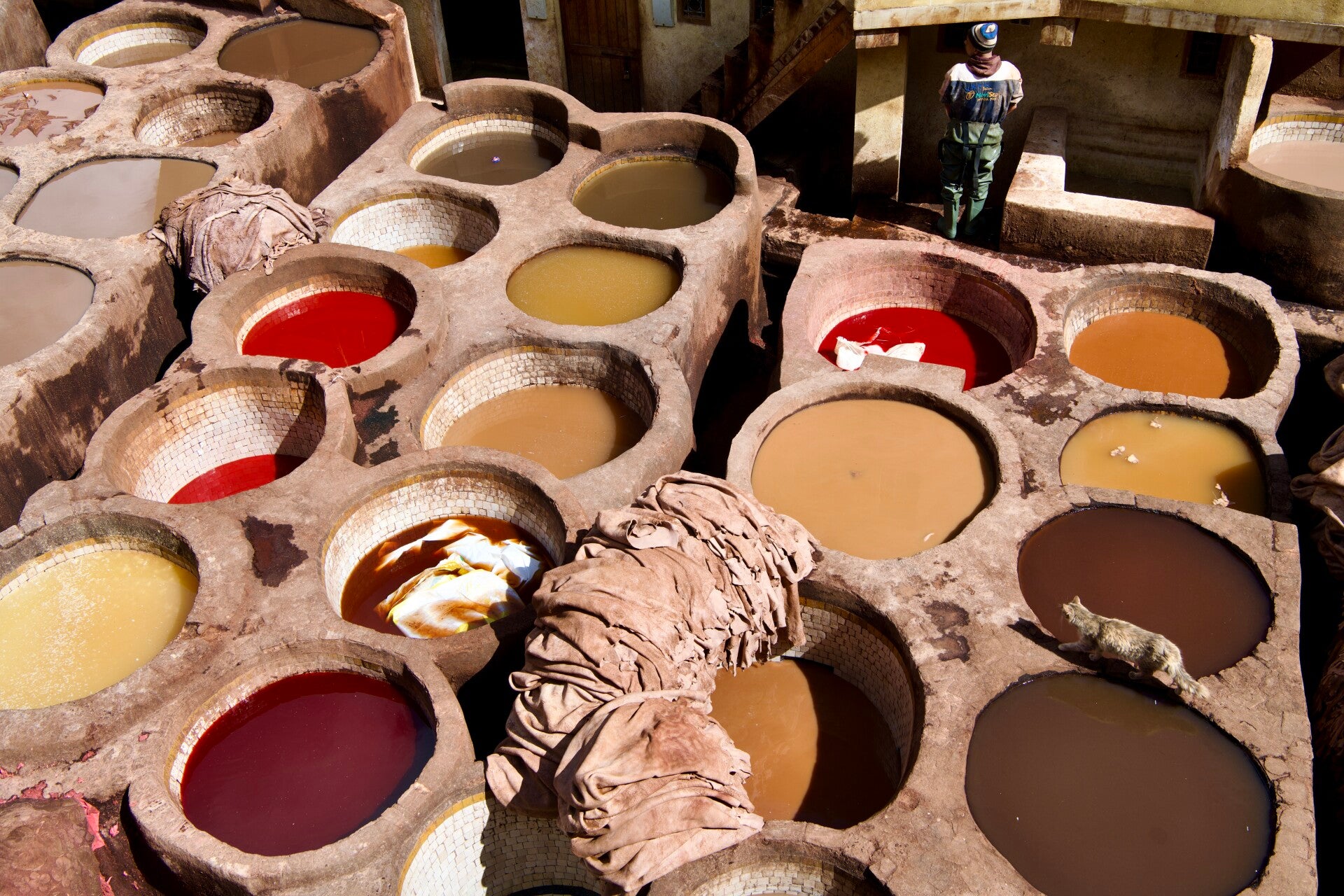 Il viaggio inizia nella Medina di Fez, labirinto di vicoli che pullulano di artigiani e mercanti. Nel cuore della Medina, le concerie Chouara ti aggrediscono con gli sgradevoli odori acri e penetranti utilizzati per conciare le pelli e che contrastano con gli odori di spezie, cuoio e incenso che si respirano all’esterno.